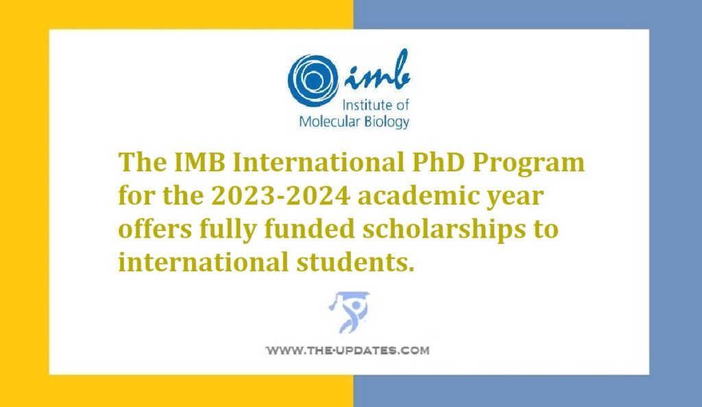 The IMB International PhD Program for the 2023-2024 academic year offers fully funded scholarships to international students. This program provides financial support for accommodation and